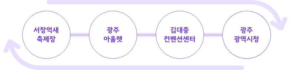 - 5•18기념공원 - 메가박스-KBS광주방송총국-시청앞사거리-광주광역시청