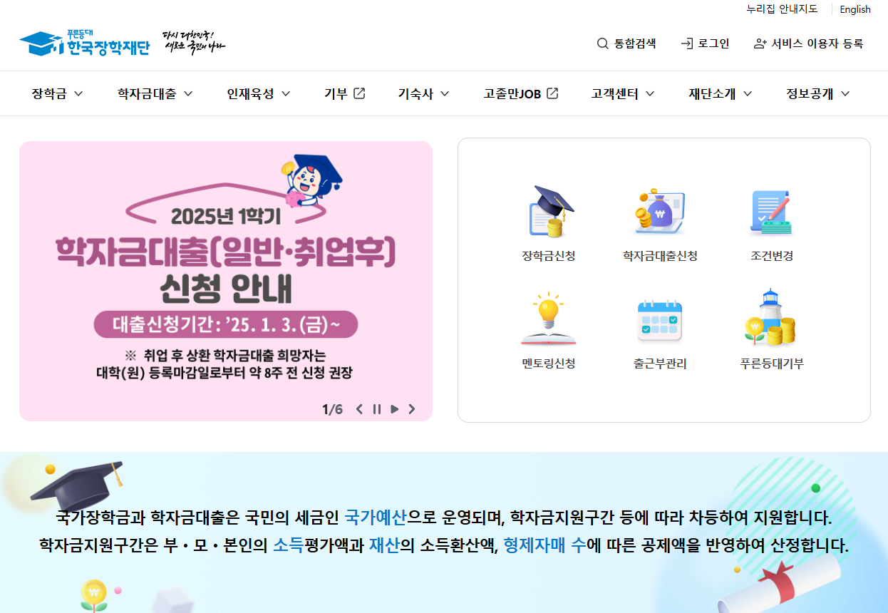 먼저 한국장학재단 홈페이지에 접속하세요. PC와 모바일 모두 가능하지만, PC에서 하는 게 편리합니다.