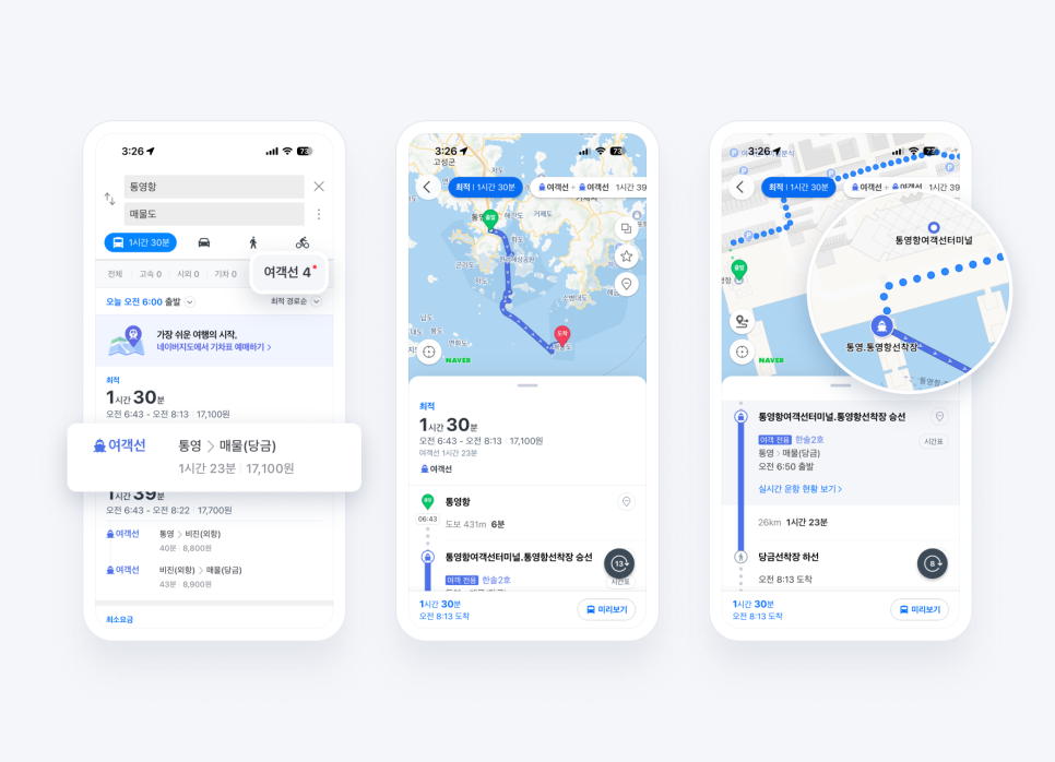 앞으로 네이버 지도에서 여객선 운항 경로, 시간표 등을 실시간으로 확인할 수 있다.