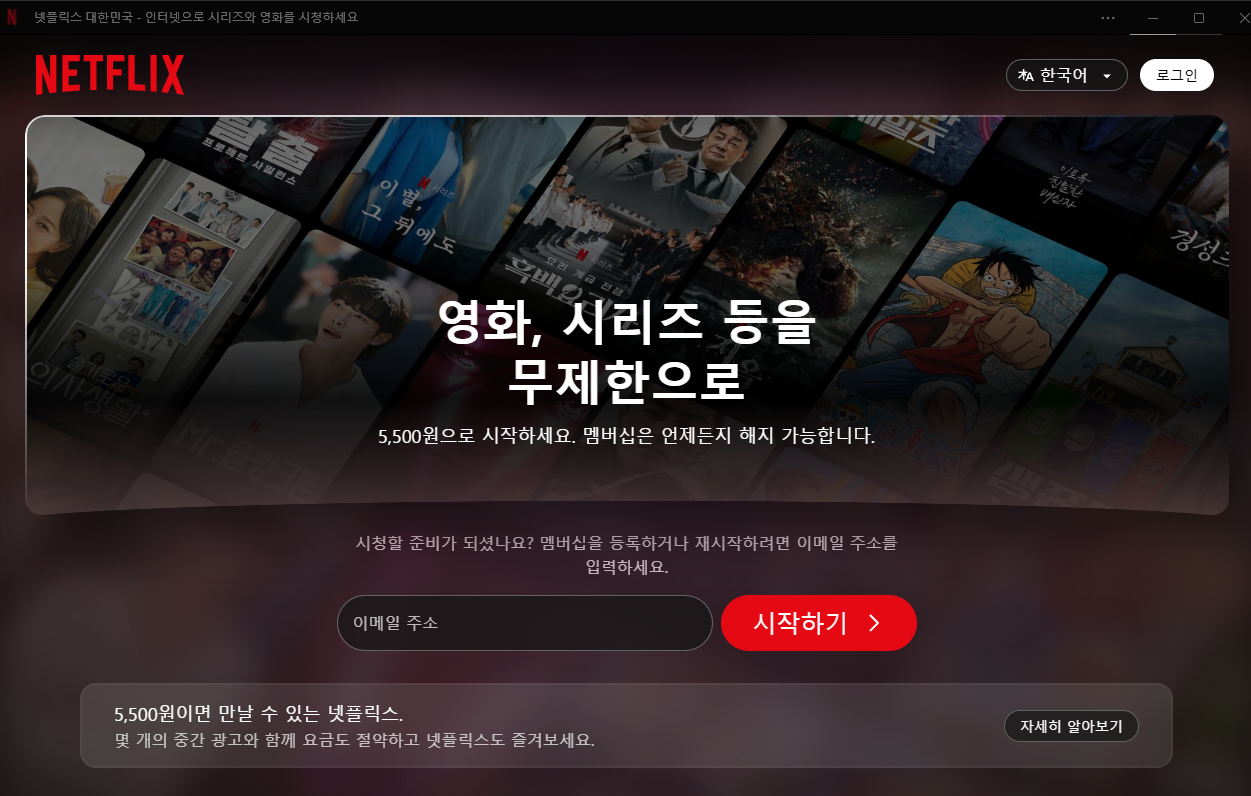 - 설치가 완료되면 시작 버튼을 클릭하여 넷플릭스 앱을 실행합니다.