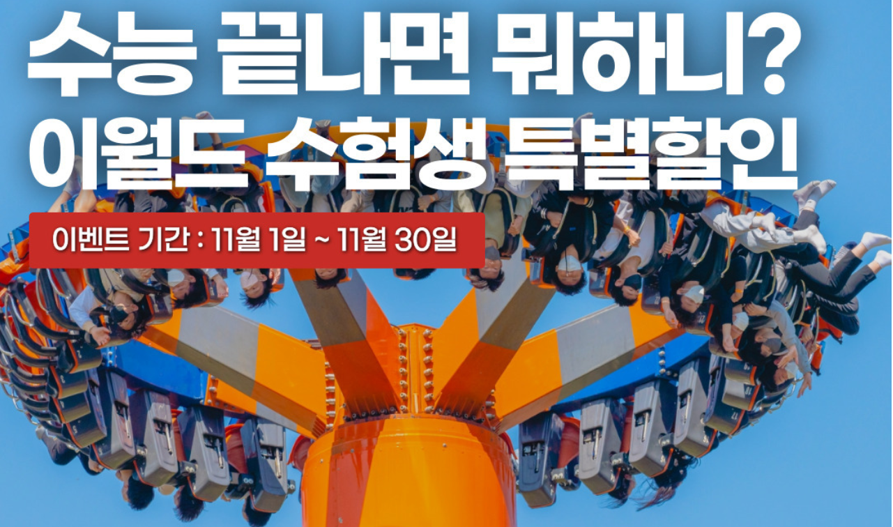 수험생이라면 놓칠 수 없는 혜택, 바로 놀이공원 할인입니다! 수험표를 챙겨서 평소 가보고 싶었던 놀이공원에 방문해 보세요.