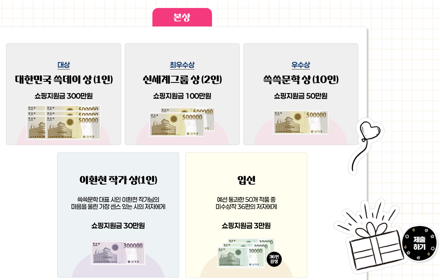 🛒 시 한 편 쓱- 쓰고✏️ 푸짐한 경품도 쓱- 받아갈 기회