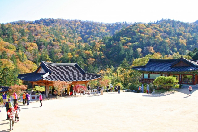 가을철 오대산 선재길은 특히 아름답습니다. 단풍이 물든 나무들이 길을 따라 늘어서 있어, 걷는 내내 환상적인 풍경을 감상할 수 있습니다.