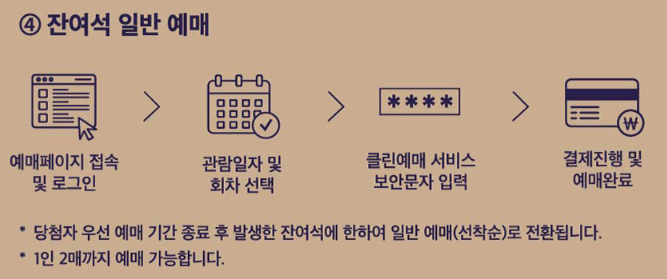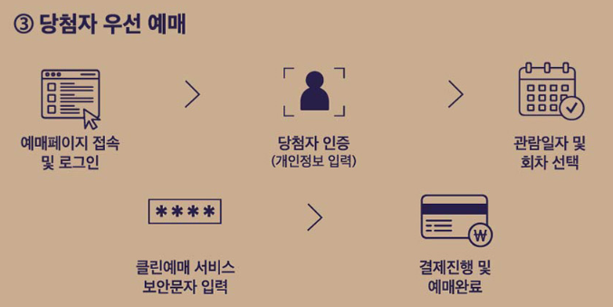 당첨자는 이 기간 내에 원하는 관람일자 및 회차를 선택하여 예매를 완료해야 합니다.