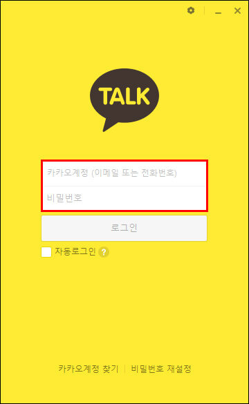 로그인 화면 접근: 카카오톡 로그인 화면이 나타납니다.