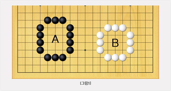 [그림1]처럼 바둑돌로 둘러싸인 집이 많아야 승리할 수 있는 게임으로